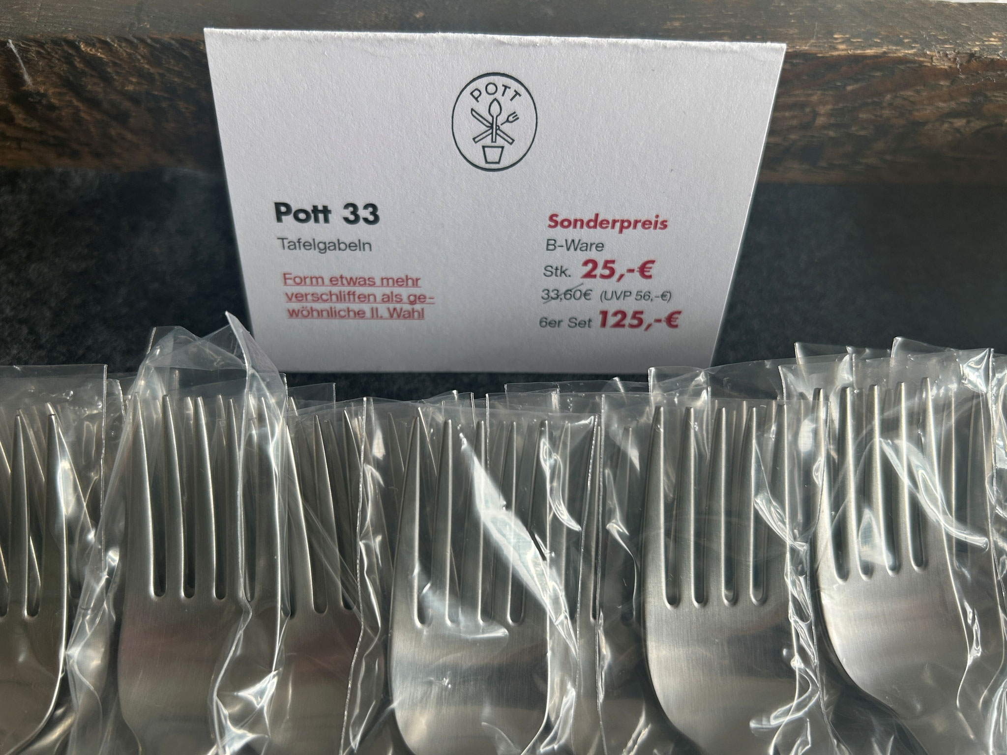 Zu diesem besonderen Anlass gelten für eine begrenzte Zeit exklusive 19,75 % Rabatt auf alle Pott 33 Artikel (I. Wahl). Das klare Design, die fünf Zinken und die feine Griffkerbe machen Pott 33 zu einem zeitlosen Modell mit hohem Wiedererkennungswert.