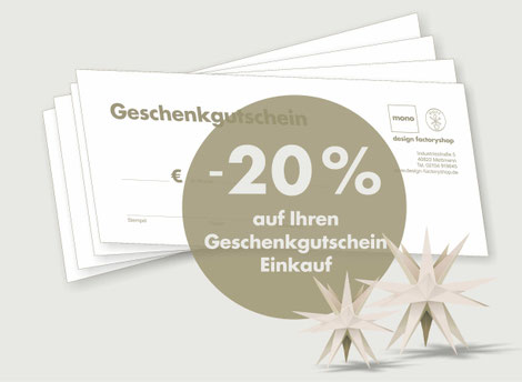 Entspannt noch, ohne lange Überlegungen, einen Geschenkgutschein in Höhe Ihrer Wahl kaufen und 20 % auf den Gutscheinwert sparen!
