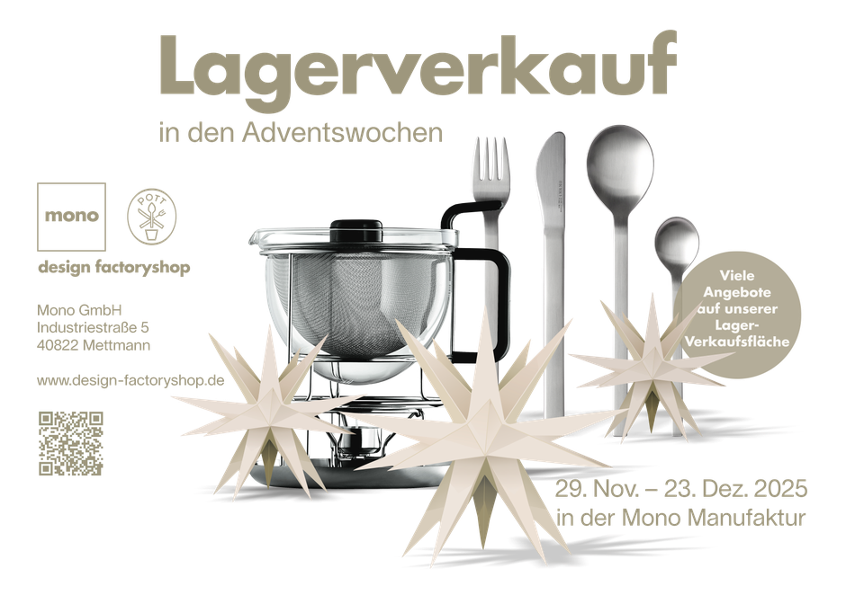 Noch bis Freitag, 19.12. können Sie beim Kauf unserer vorrätigen Mono Tee Produkte mit kleinen Schönheitsfehlern zusätzlich sparen!