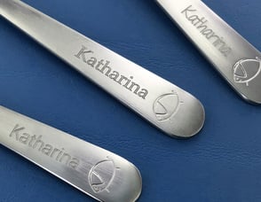 Individualisieren Sie Ihr Besteck - mit eingraviertem Namen, Einzelbuchstaben, Monogramm, Logo oder Wappen erhalten Sie Ihr individuelles Besteck. Wir bieten Ihnen eine Auswahl von fünf verschiedenen Schriftarten als Standard. Gerne entwickeln wir gemeinsam mit Ihnen eine individuelle Lösung mit Logo, Wappen oder ähnlichem. Alle Lasergravuren werden in der Mono Manufaktur auf Vorbestellung angefertigt.
